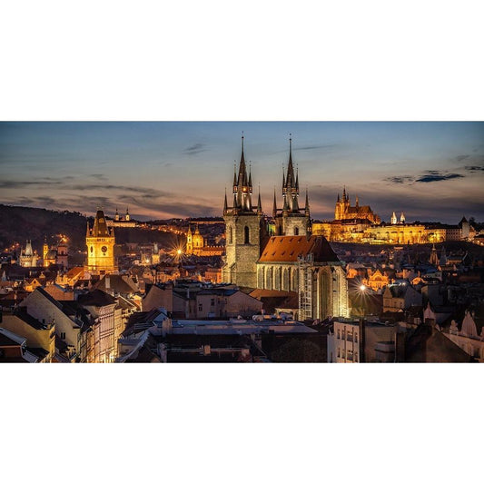 Europe-Czech Republic-Prague-Panoramic overview of city at sunset Black Modern Wood Framed Art Print with Double Matting by Jaynes Gallery