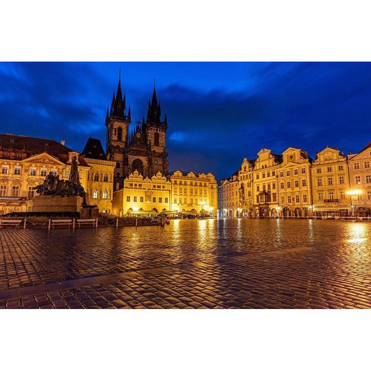 Tyn Church at dawn on wet cobblestones in Old Town Square in Prague-Czech Republic Black Modern Wood Framed Art Print with Double Matting by Haney, Chuck