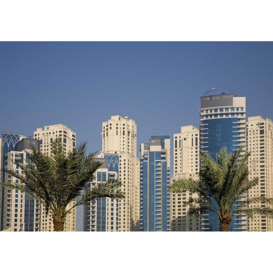 UAE, Dubai, Marina Jumeirah Beach buildings Black Modern Wood Framed Art Print with Double Matting by Young, Bill