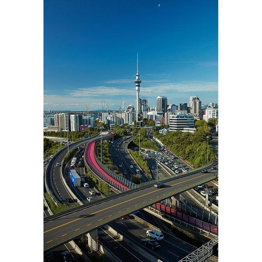 Motorways-Lightpath cycleway-and Skytower-Auckland-North Island-New Zealand Black Modern Wood Framed Art Print with Double Matting by Wall, David