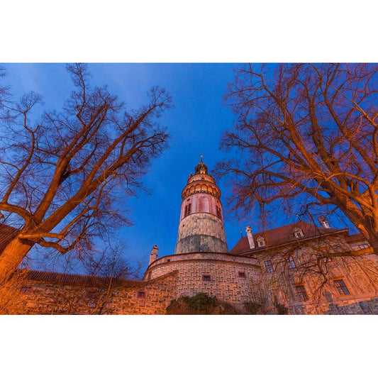 Europe-Czech Republic-Cesky Krumlov-Castle and trees at sunset Black Modern Wood Framed Art Print with Double Matting by Jaynes Gallery