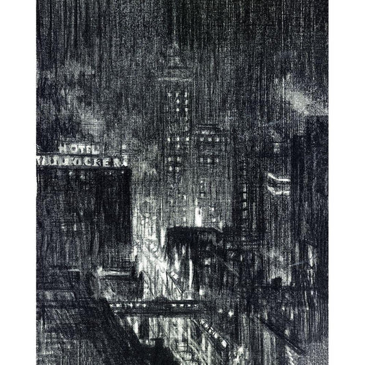 Manhattan Night Black Modern Wood Framed Art Print with Double Matting by Stellar Design Studio