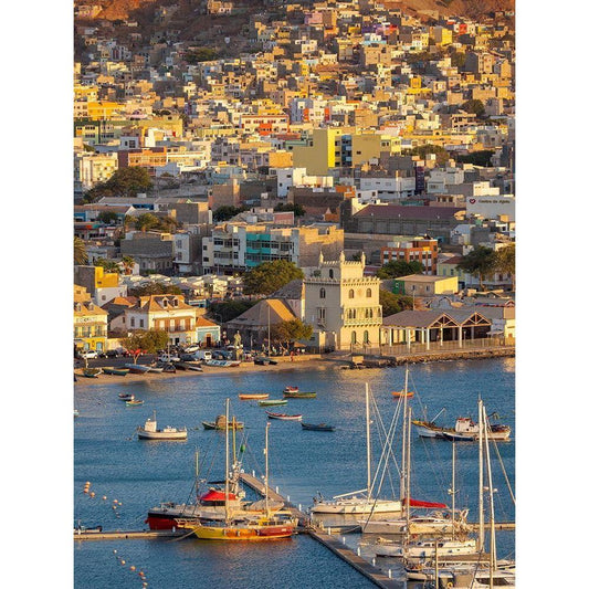 City Mindelo-a seaport on the island Sao Vicente-Cape Verde Africa Black Modern Wood Framed Art Print with Double Matting by Zwick, Martin