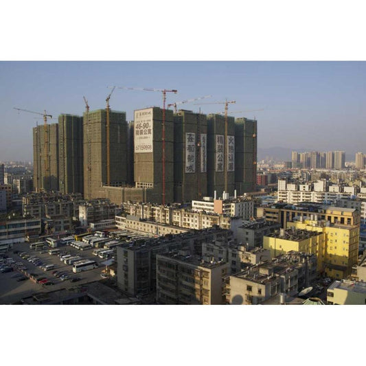 China, Yunnan, Mile Building under construction Black Modern Wood Framed Art Print with Double Matting by Anon, Josh