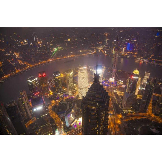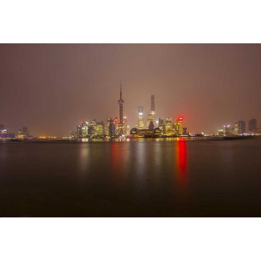 China, Shanghai Downtown buildings at night Black Modern Wood Framed Art Print with Double Matting by Zuckerman, Jim