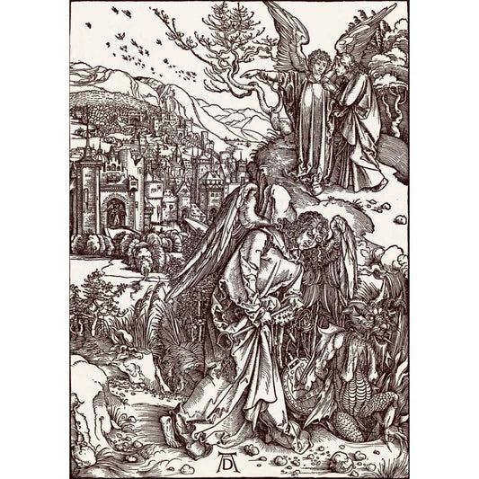 The New Jerusalem and the Bottomless Pit Black Modern Wood Framed Art Print with Double Matting by Durer, Albrecht
