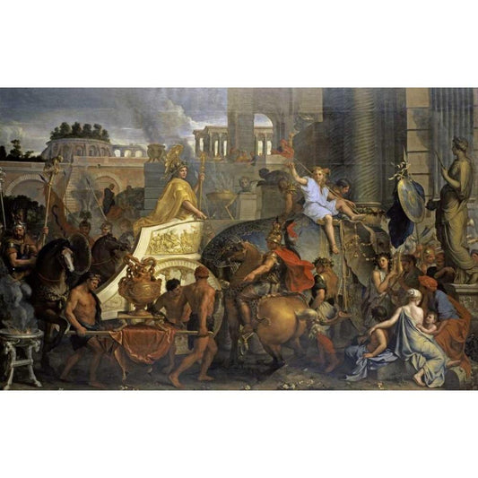 Alexanders Entrance Into Babylon Black Modern Wood Framed Art Print with Double Matting by Le Brun, Charles