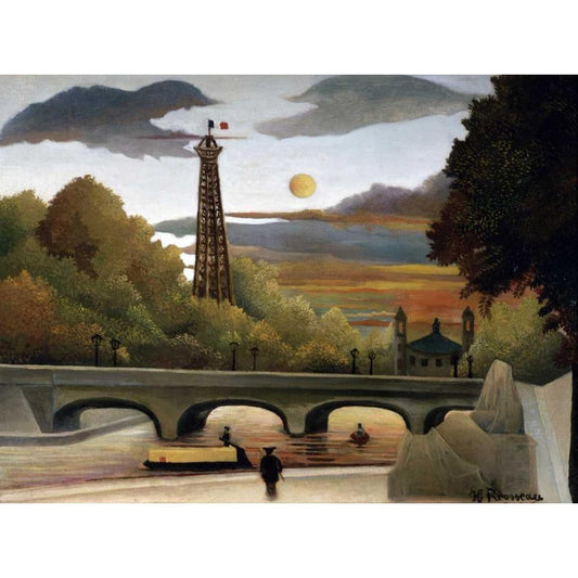 The Eiffel Tower Black Modern Wood Framed Art Print with Double Matting by Rousseau, Henri