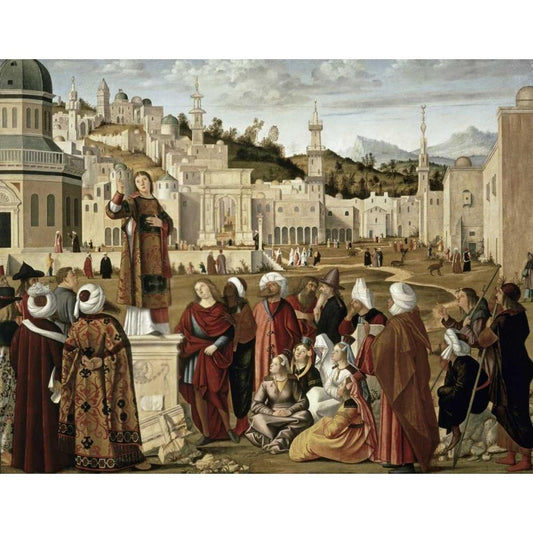 St. Stephen Preaching at Jerusalem Black Modern Wood Framed Art Print with Double Matting by Carpaccio, Vittore