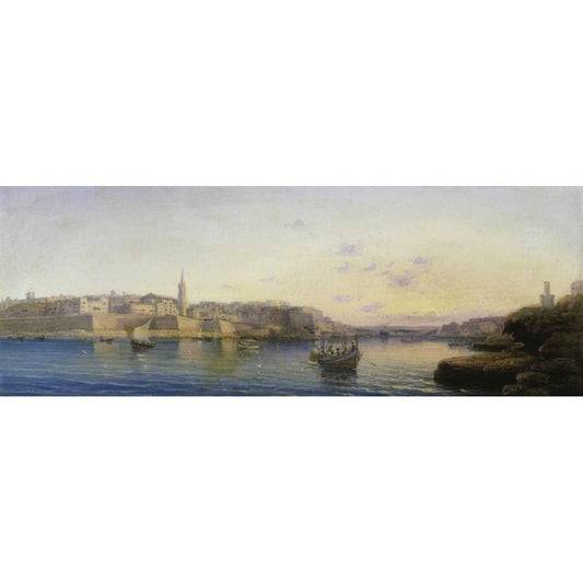 Valetta Harbour, Malta; and Medina, Malta Black Modern Wood Framed Art Print with Double Matting by Galea, Luigi
