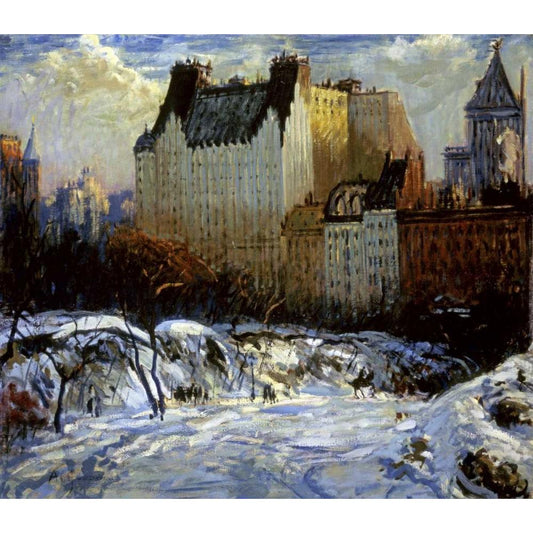 A View of the Plaza from Central Park Black Modern Wood Framed Art Print with Double Matting by Goodwin, Arthur Clifton