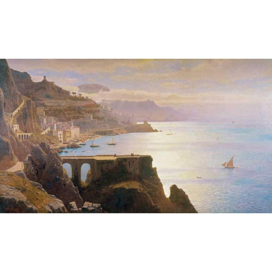 Amalfi Coast S.L.L. Black Modern Wood Framed Art Print with Double Matting by Haseltine, William Stanley