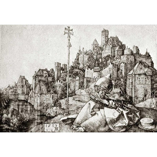 St Anthony At The City Black Modern Wood Framed Art Print with Double Matting by Durer, Albrecht
