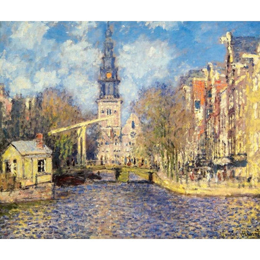The Zuiderkerk At Amsterdam Black Modern Wood Framed Art Print with Double Matting by Monet, Claude