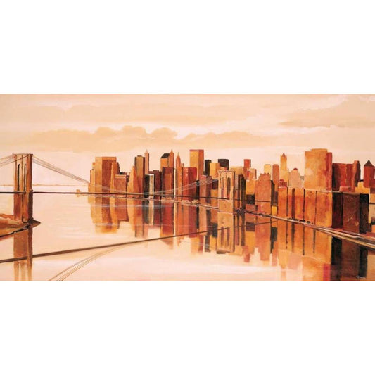 Cityview I Black Modern Wood Framed Art Print with Double Matting by Renee