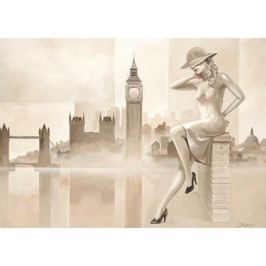 London lady Black Modern Wood Framed Art Print with Double Matting by Jasper