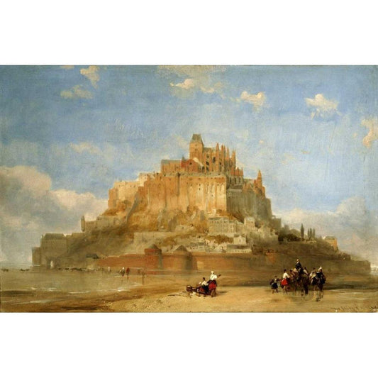 Mont St Michel From The Sands Black Modern Wood Framed Art Print with Double Matting by Roberts, David