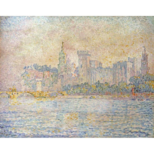 Avignon, Morning Black Modern Wood Framed Art Print with Double Matting by Signac, Paul