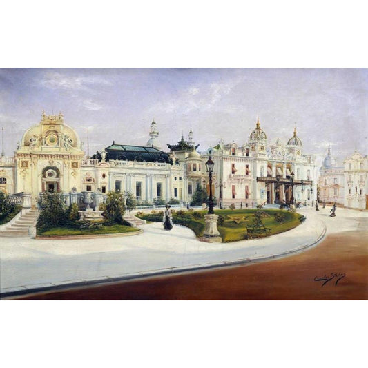 The Casino, Monte Carlo Black Modern Wood Framed Art Print with Double Matting by Stevens, Charles