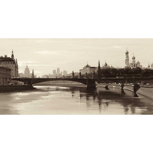 Bolshoy Moskworetsky Bridge Black Modern Wood Framed Art Print with Double Matting by Ryazanov
