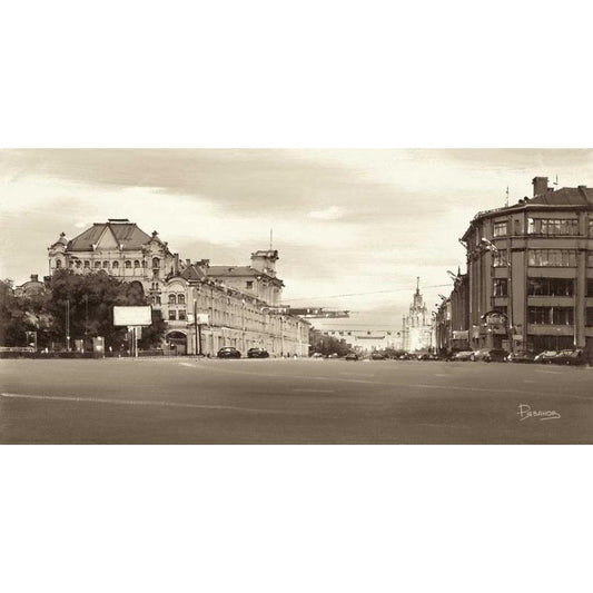 Lubjanka Place, Moscow Black Modern Wood Framed Art Print with Double Matting by Ryazanov