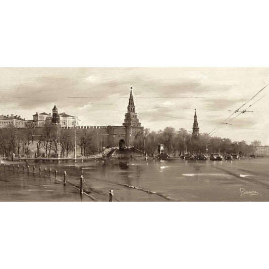 View On Kremlin Black Modern Wood Framed Art Print with Double Matting by Ryazanov