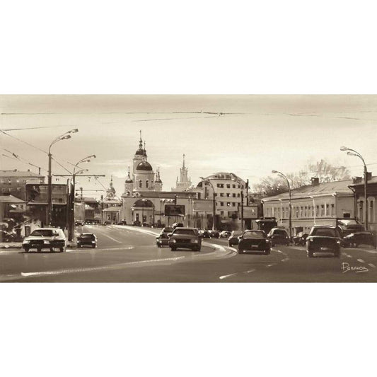 Sergy Radonezhsky Street Black Modern Wood Framed Art Print with Double Matting by Ryazanov