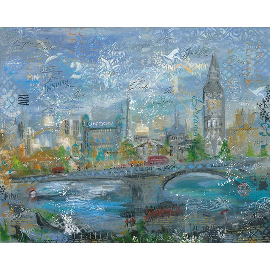 ABSTRACT LONDON Black Modern Wood Framed Art Print with Double Matting by Mizo