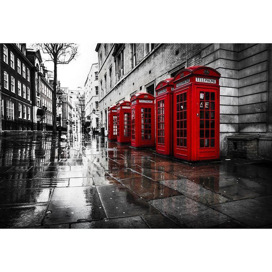 PHONE BOOTHS III Black Modern Wood Framed Art Print with Double Matting by Kostka, Vladimir