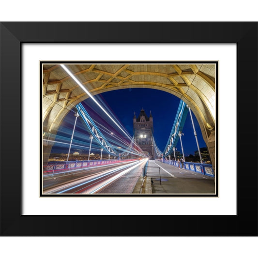 Tower Bridge strip lights Black Modern Wood Framed Art Print with Double Matting by Frank, Assaf