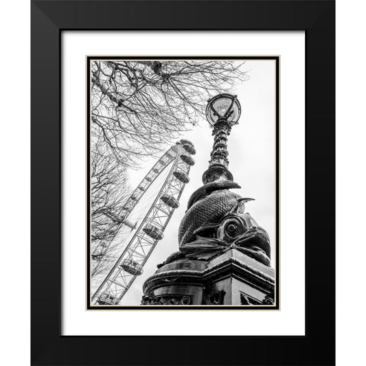 London eye and Street lamp Black Modern Wood Framed Art Print with Double Matting by Frank, Assaf