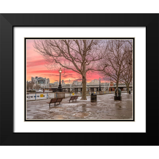 Thames promenade-London Black Modern Wood Framed Art Print with Double Matting by Frank, Assaf