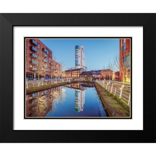 Canal reflections, Leeds Black Modern Wood Framed Art Print with Double Matting by Frank, Assaf