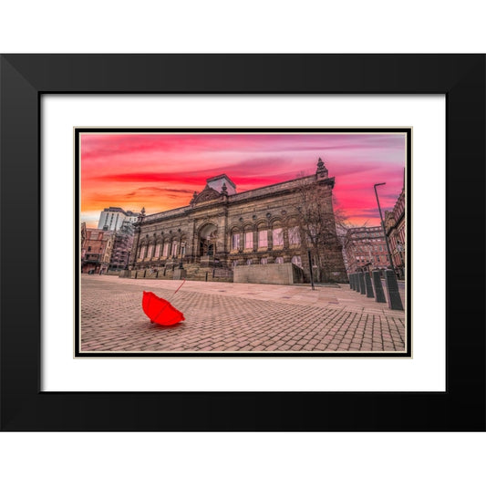 Red umbrella outside-city museum Black Modern Wood Framed Art Print with Double Matting by Frank, Assaf