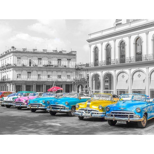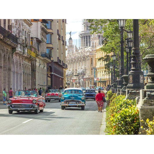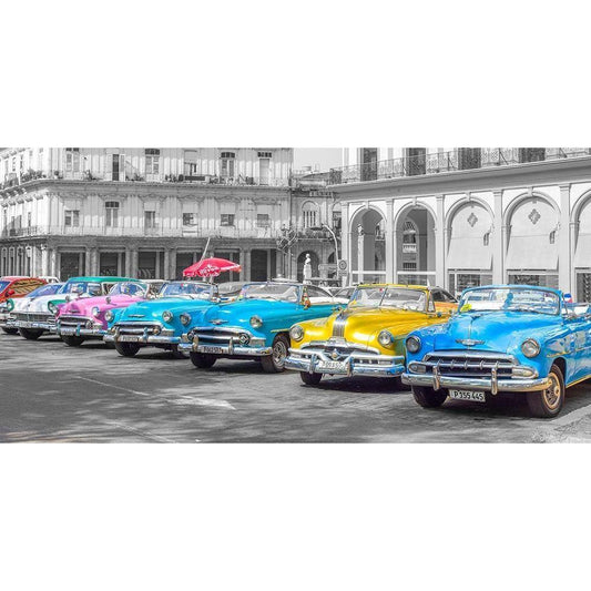 Vintage cars on Havana street, Cuba Black Modern Wood Framed Art Print with Double Matting by Frank, Assaf