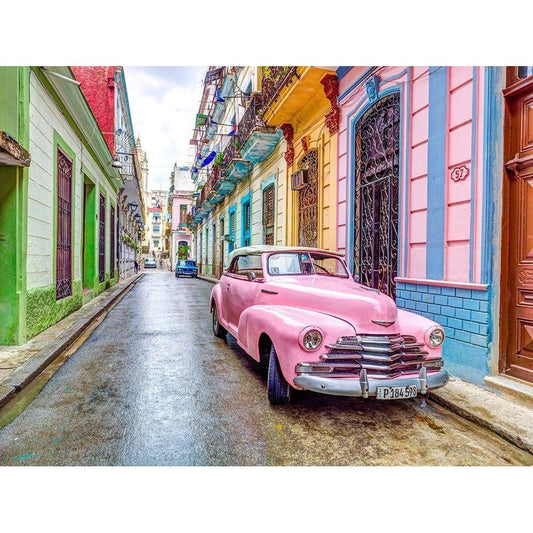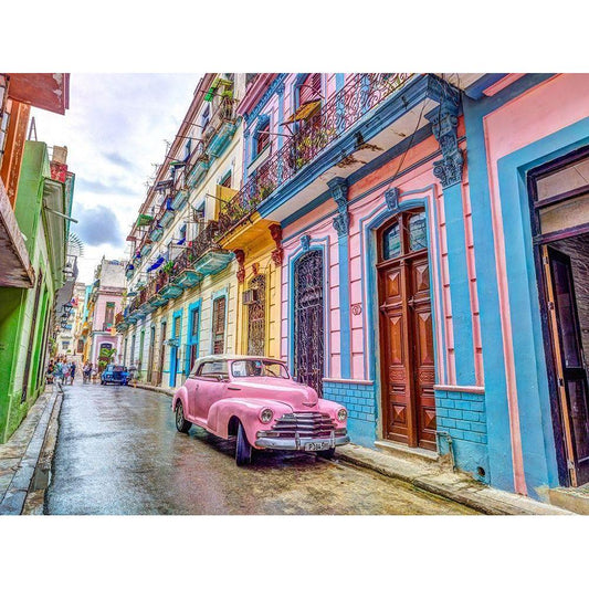 Vintage car on street of Havana-Cuba Black Modern Wood Framed Art Print with Double Matting by Frank, Assaf
