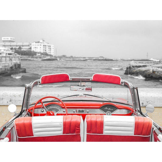 Vintage car near the beach in Cuba Black Modern Wood Framed Art Print with Double Matting by Frank, Assaf