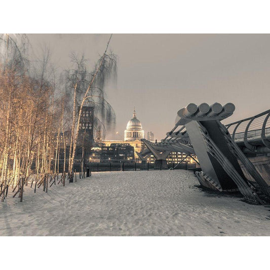 St Pauls Cathedral and Millennium Bridge in snow-London-UK Black Modern Wood Framed Art Print with Double Matting by Frank, Assaf