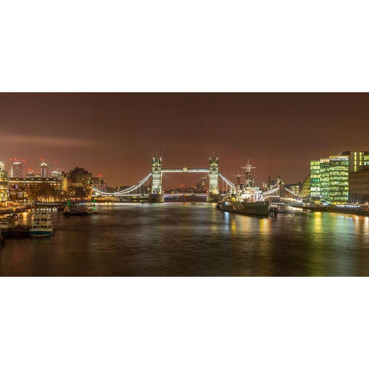 Tower Bridge and HMS Belfast at night Black Modern Wood Framed Art Print with Double Matting by Frank, Assaf