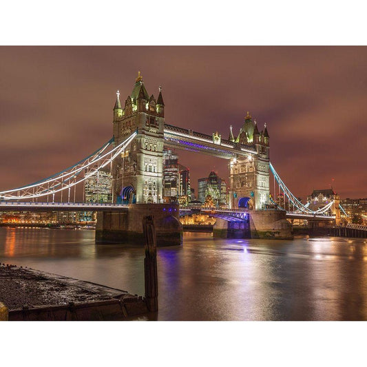 Tower bridge at night-London Black Modern Wood Framed Art Print with Double Matting by Frank, Assaf