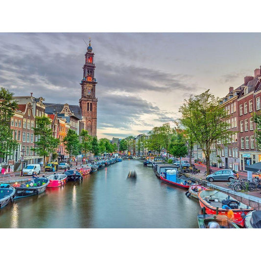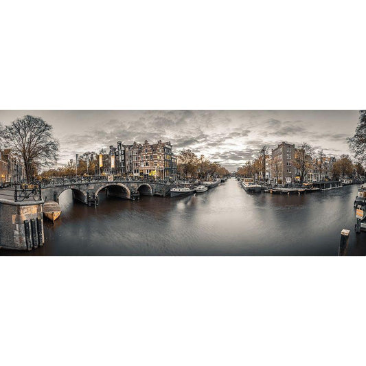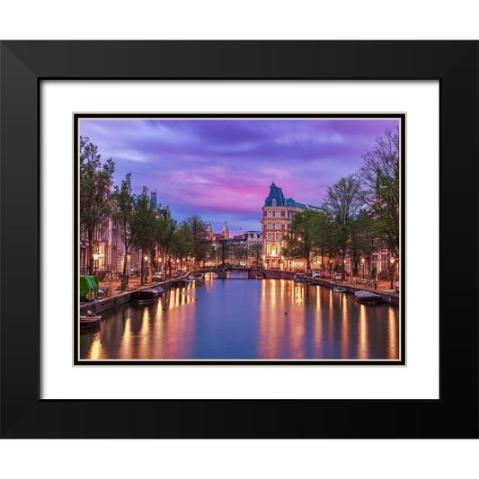 Amsterdam in evening Black Modern Wood Framed Art Print with Double Matting by Frank, Assaf