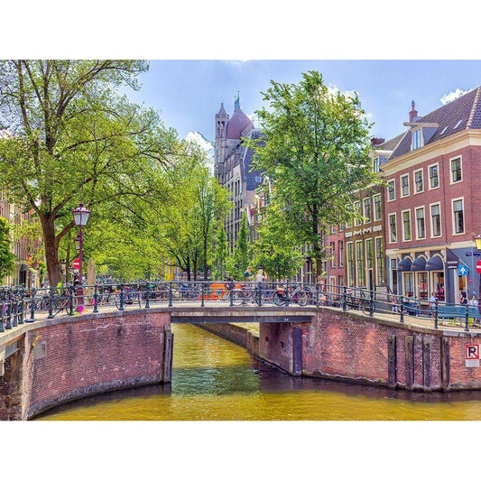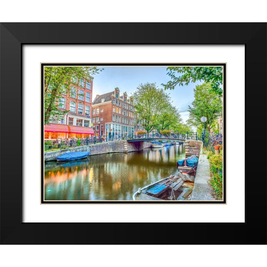 Canal through Amsterdam city Black Modern Wood Framed Art Print with Double Matting by Frank, Assaf