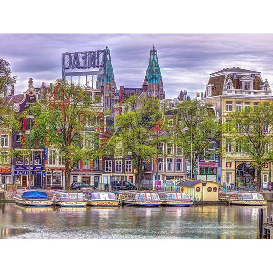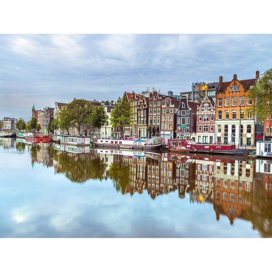 Amsterdam waterfront Black Modern Wood Framed Art Print with Double Matting by Frank, Assaf