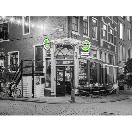 Street cafe in Amsterdam Black Modern Wood Framed Art Print with Double Matting by Frank, Assaf