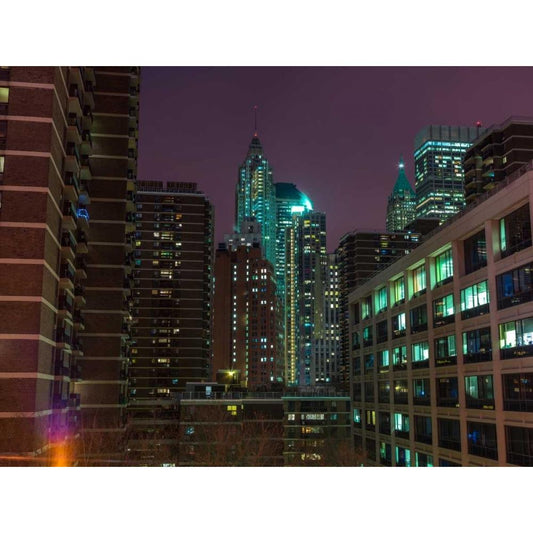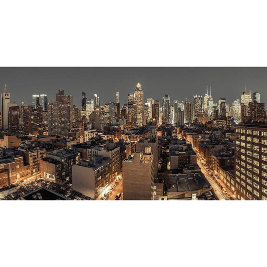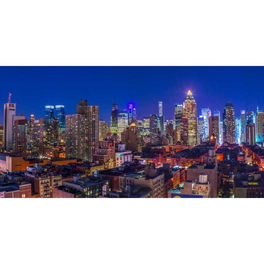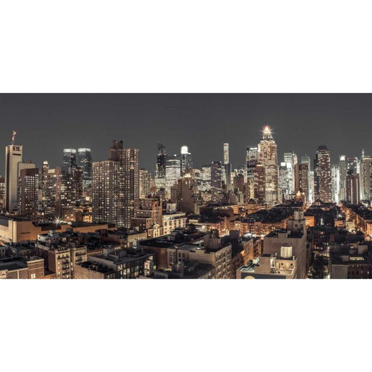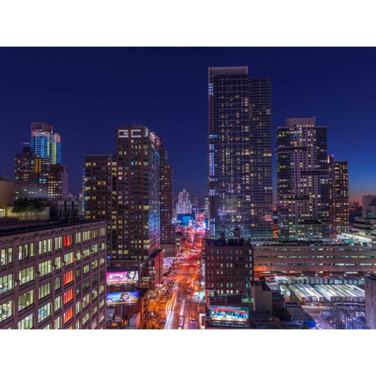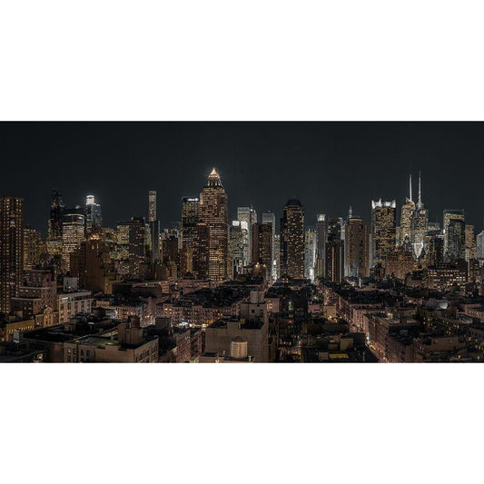 New York cityscape at night Black Modern Wood Framed Art Print with Double Matting by Frank, Assaf