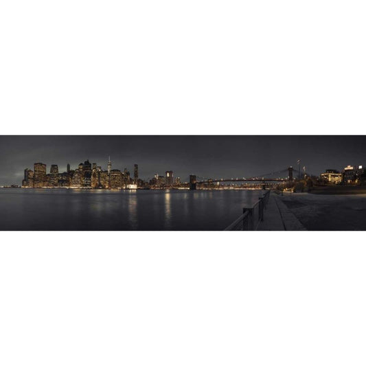 Evening view of Manhattan skyline from Brooklyn bridge Black Modern Wood Framed Art Print with Double Matting by Frank, Assaf
