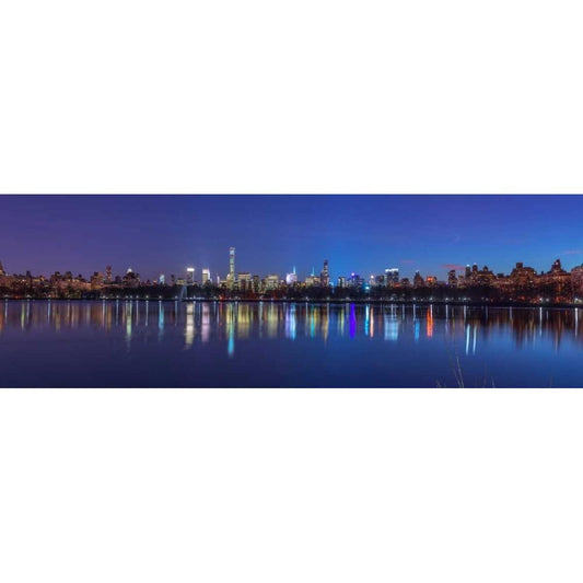 Panoramic view of Lower Manhattan skyline from Central park, New York Black Modern Wood Framed Art Print with Double Matting by Frank, Assaf