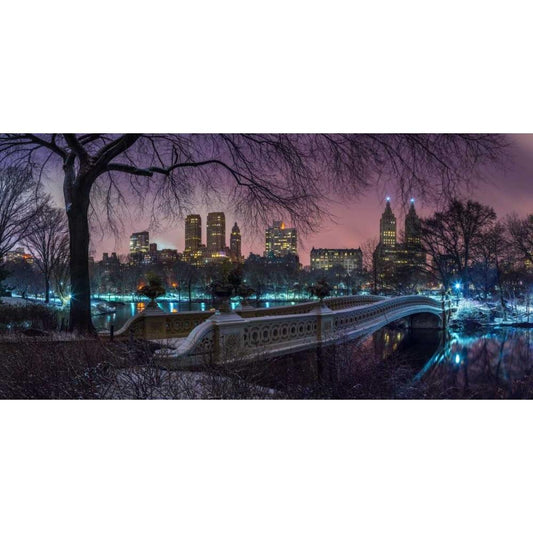 Central park with Lower Manhattan skyline, New York Black Modern Wood Framed Art Print with Double Matting by Frank, Assaf