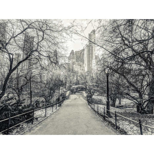 Pathway through Central park, New York Black Modern Wood Framed Art Print with Double Matting by Frank, Assaf