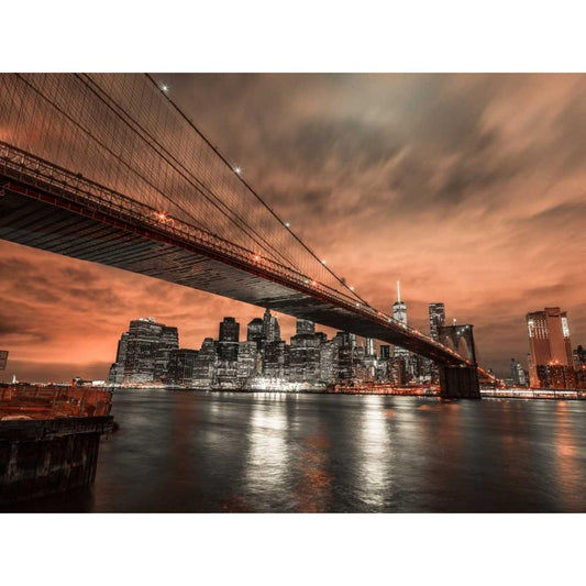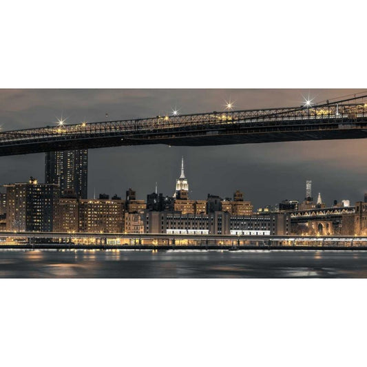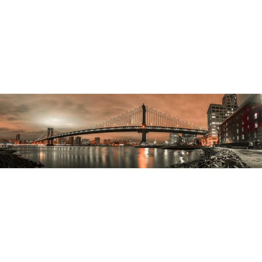 Manhattan bridge and New York city skyline Black Modern Wood Framed Art Print with Double Matting by Frank, Assaf
